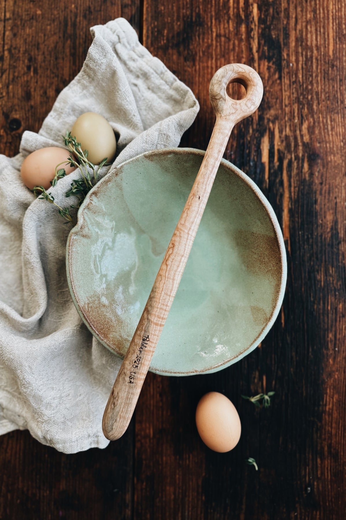This listing is for one (1) ready-to-ship Tall Spurtle Whisk in Fancy Maple. You will receive the exact item pictured.