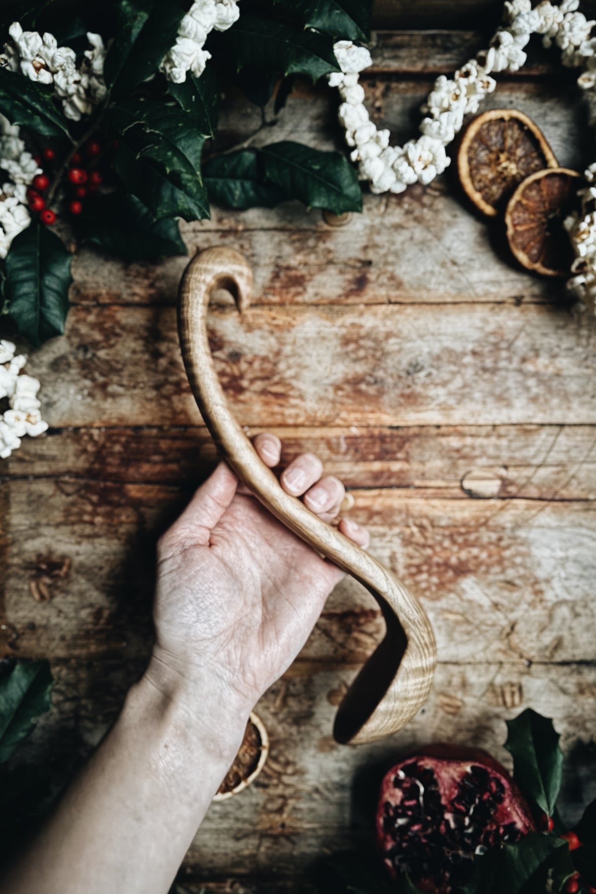 This small wooden gravy ladle is not only fully functional, but is also a stunning work of art. Hand carved with the highest degree of skill and attention to detail, it features a gracefully curved handle that allows it to be hooked over the edge of a tureen or gravy boat, and a smooth, deep bowl for holding a generous serving of sauce or gravy. Stunning enough to use for a formal occasion, but so practical that you may want to use it every day, it's breathlessly elegant lines are a visual and tactile delight. This elegant wooden ladle is certain to become a treasured family heirloom.