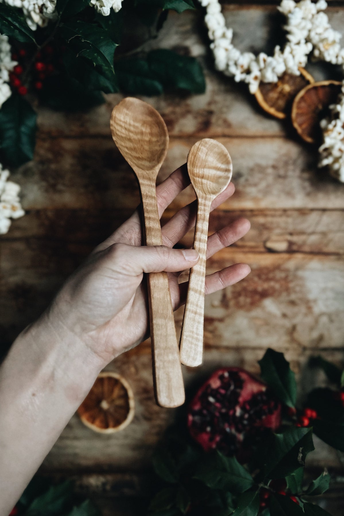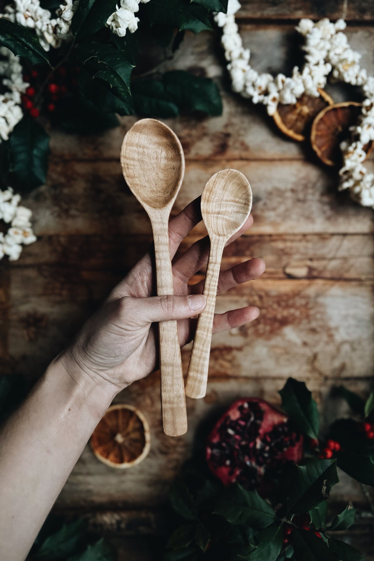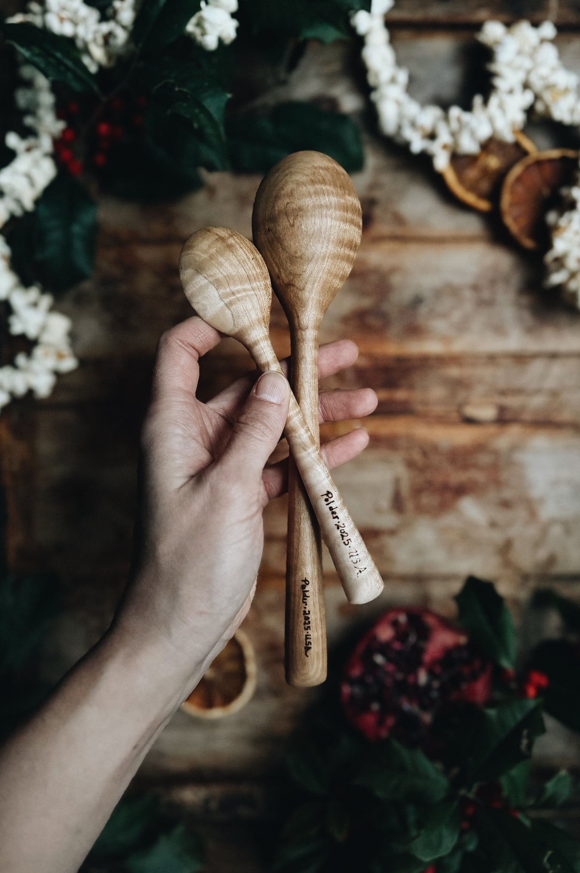 This listing is for a set of two (2) ready-to-ship one-of-a-kind Serving Spoons made from Fancy Maple wood. Approximately 9” and 6.5” long. You will receive the exact items shown.