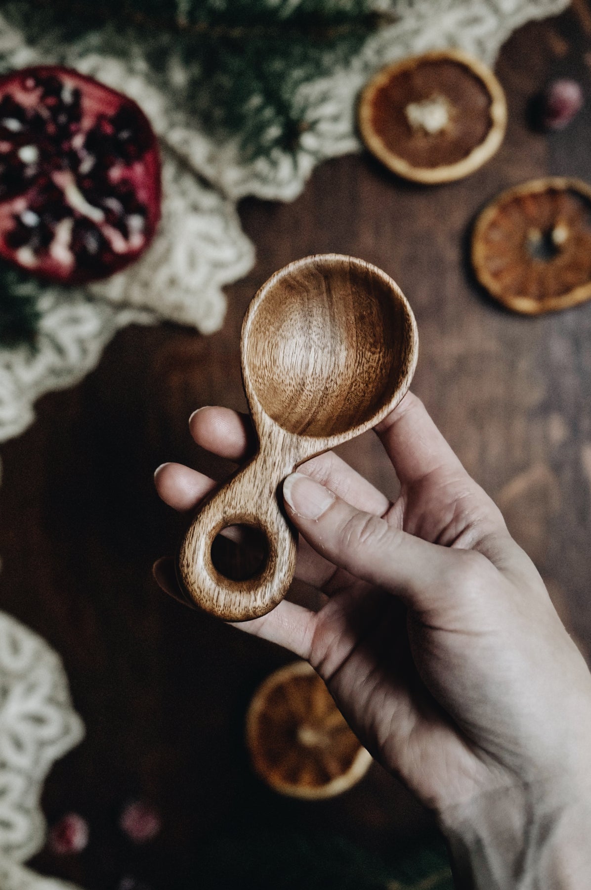 An exquisitely beautiful hand carved scoop full of rustic sophistication. These gorgeous little utensils are perfect for coffee. Use them for scooping granola into parfaits, or chia seeds into your morning smoothie. Each one is carefully handcrafted from solid hardwood right on our family farm in Virginia. This would make a very special gift for any foodie or coffee lover. Approximately 4.25" long.