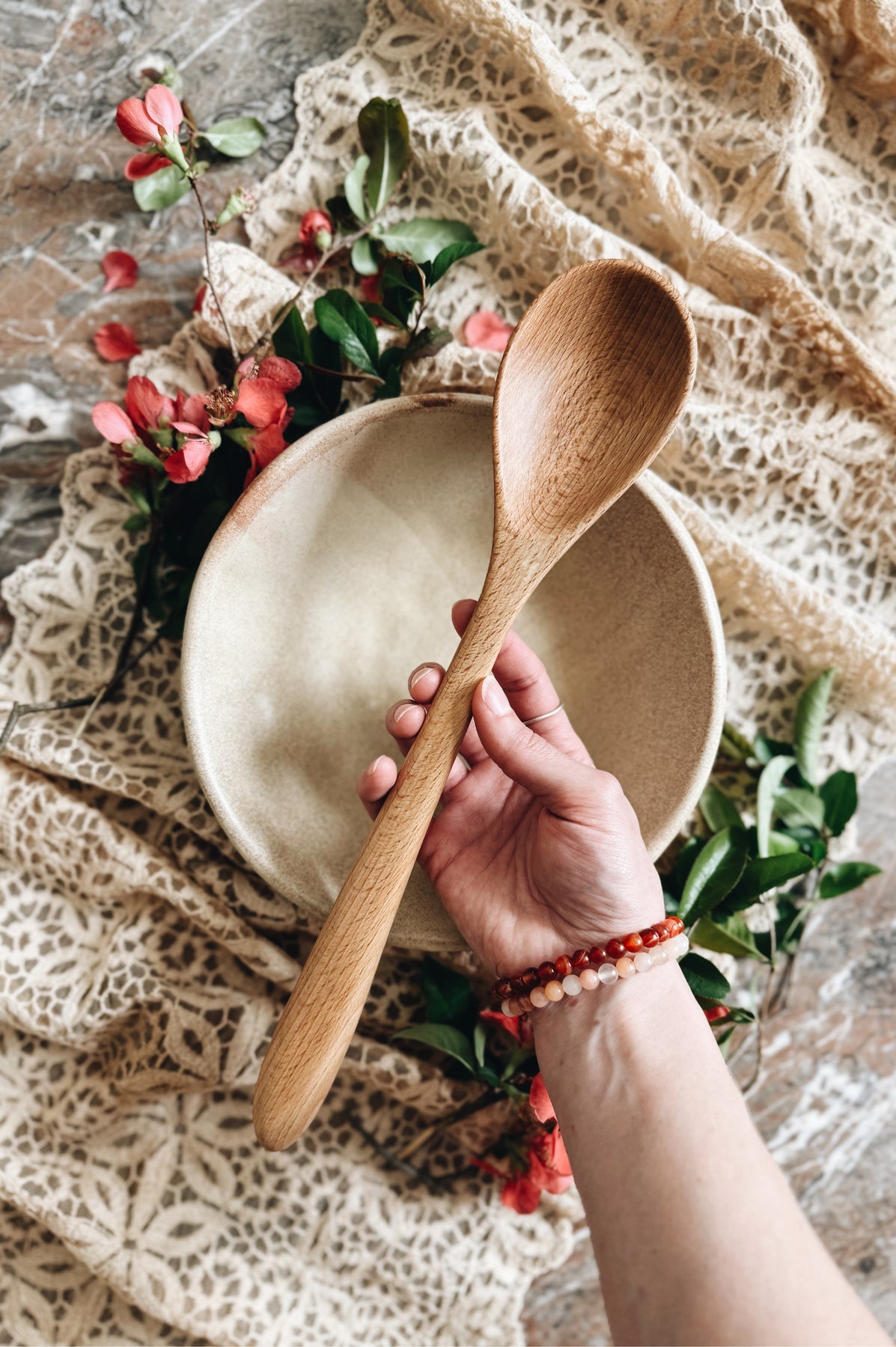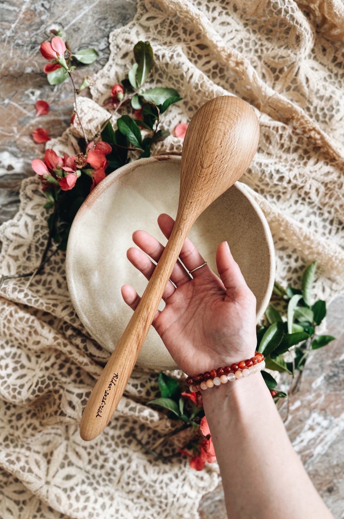 This listing is for one (1) ready to ship Large Minimalist Spoon in Beech wood. You will receive the exact item shown.