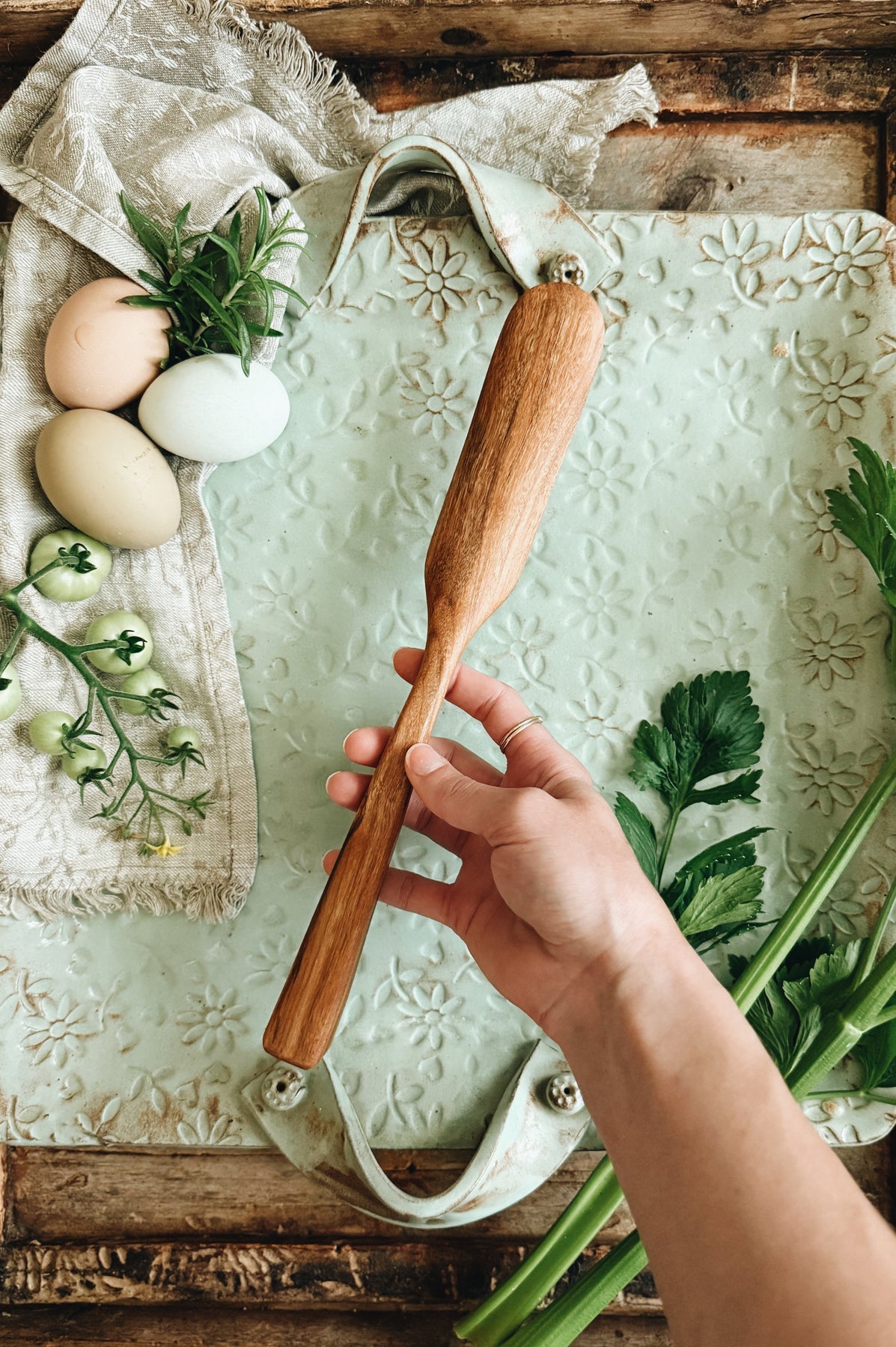 Not just for spreads and butters, this handcrafted utensil is wonderful for sauteing and even for flipping eggs, sausage links and patties, bacon, and more. It is nicely curved to make getting up underneath so easy.