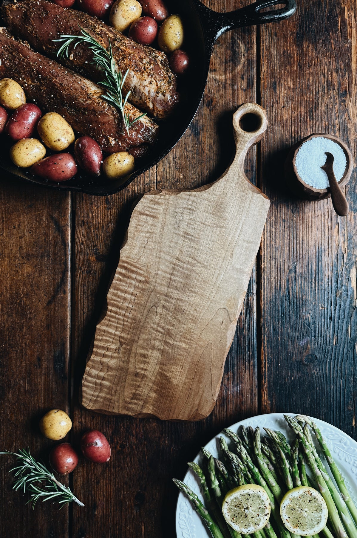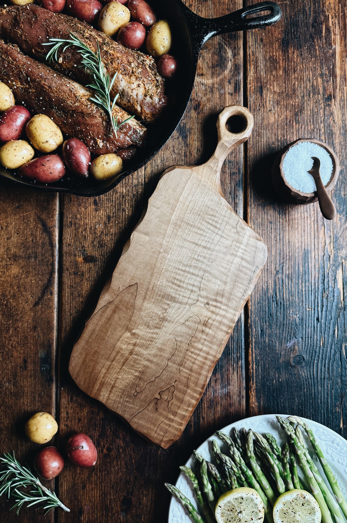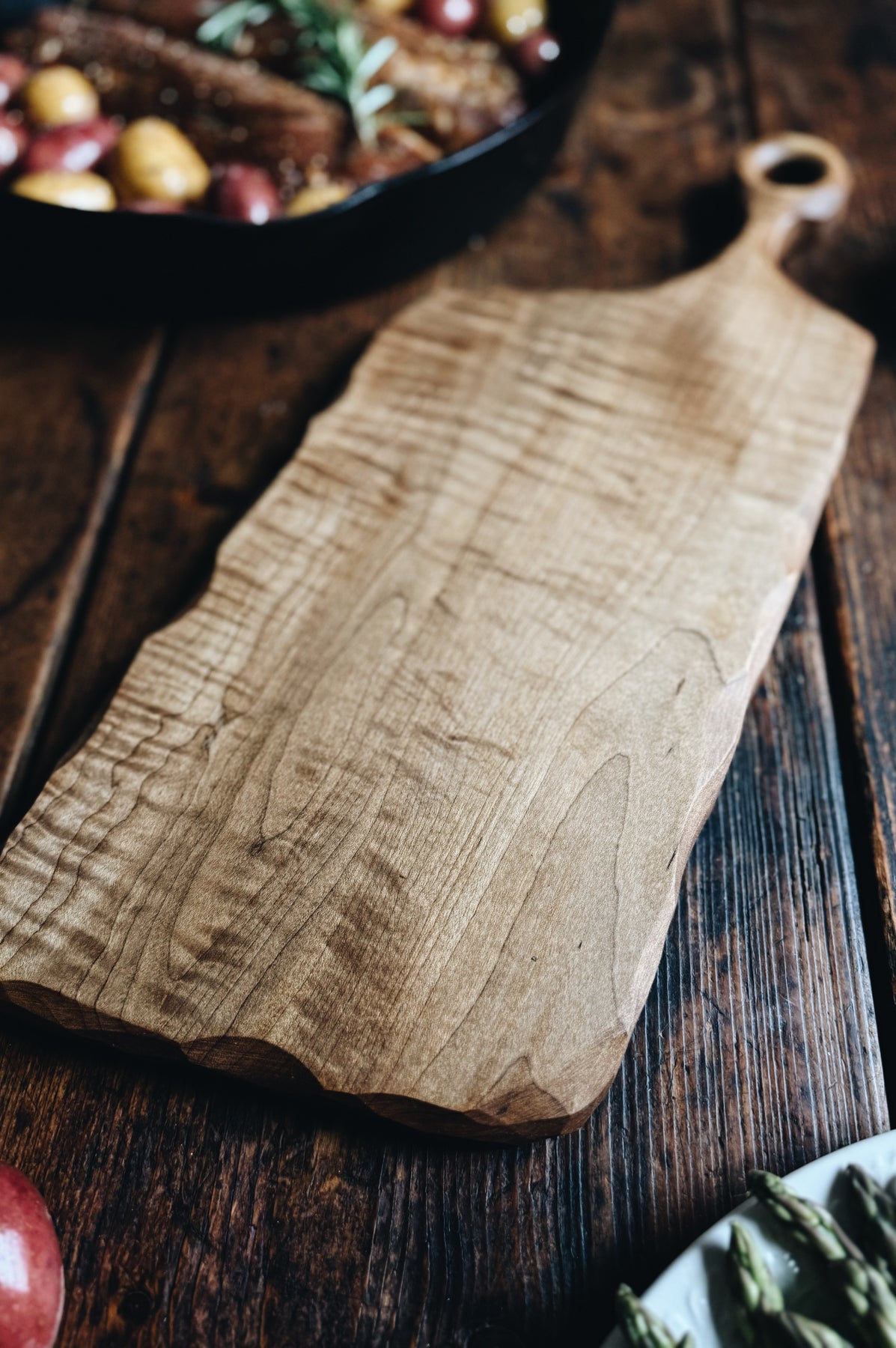 This listing is for one (1) ready-to-ship one-of-a-kind Cutting & Serving Board made from Fancy Roasted Maple (Approx. 17.5" x 7.25 x 7/8"). You will receive the exact item pictured here.