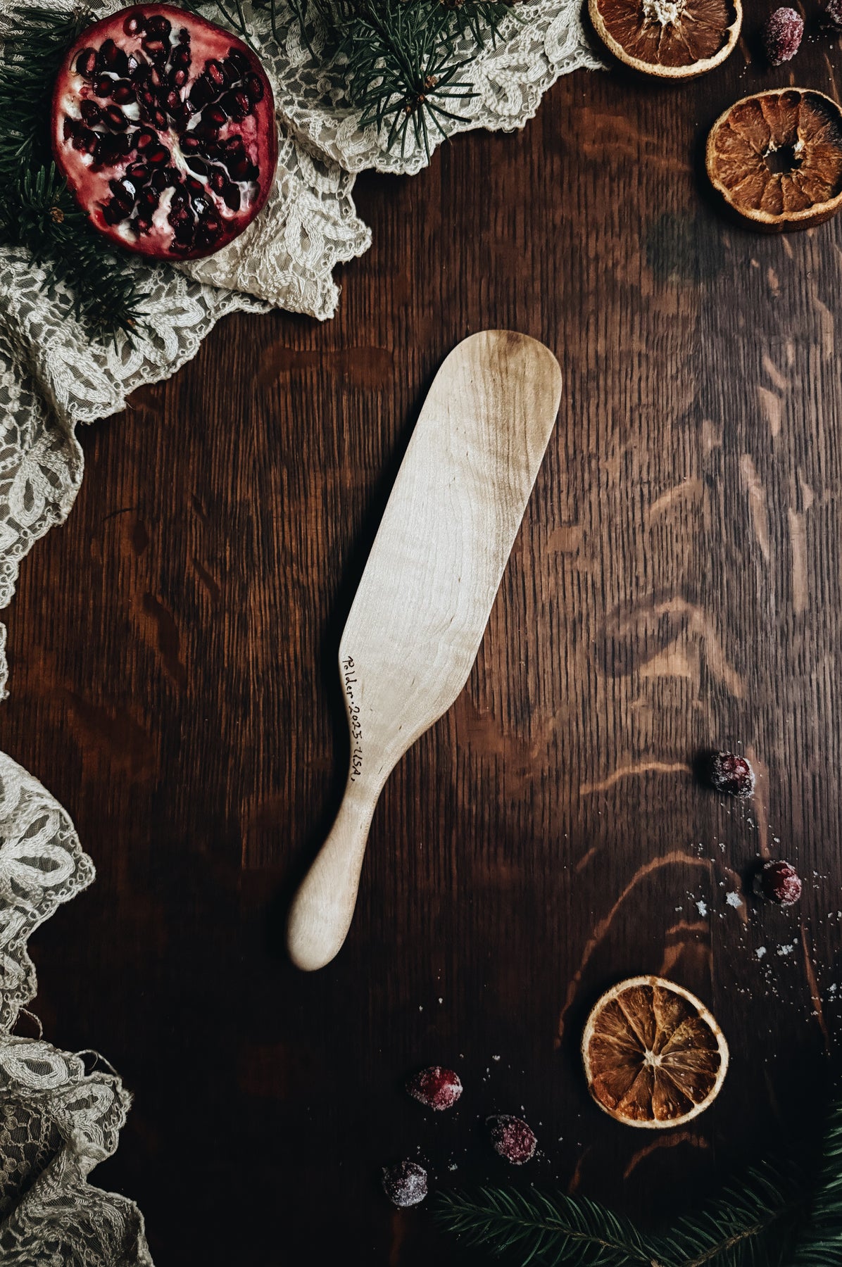 This listing is for one (1) ready-to-ship Original Spurtle in FAndy Maple wood (12" long). You will receive the exact item pictured here.