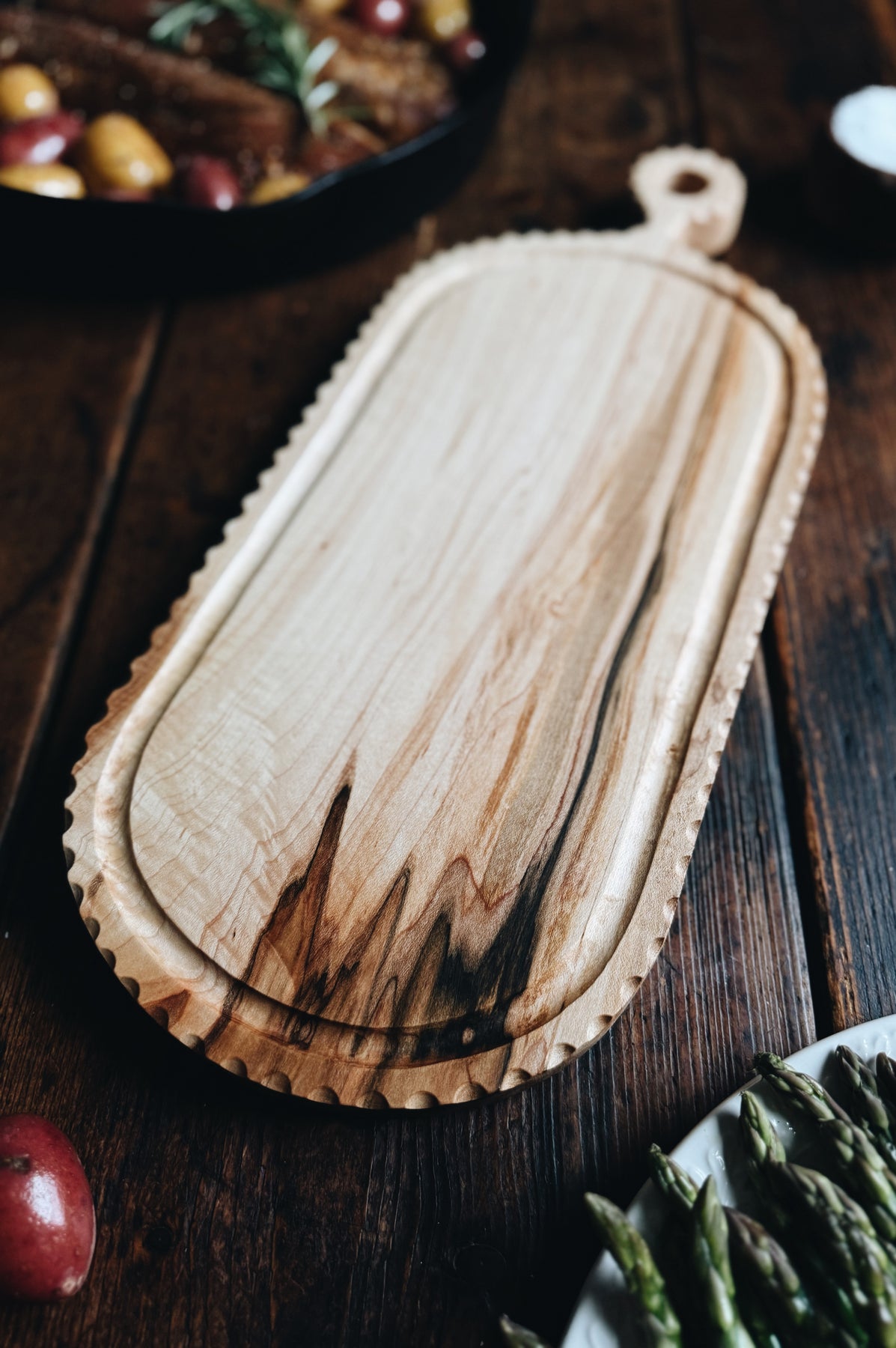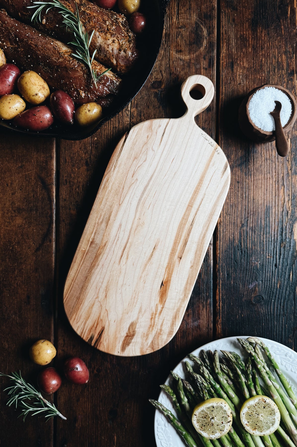 This listing is for one (1) ready to ship Sicily Board in Fancy Maple. Approximately 18" long x 7.75" wide x 7/8" thick. You will receive the exact item shown in the photos.
