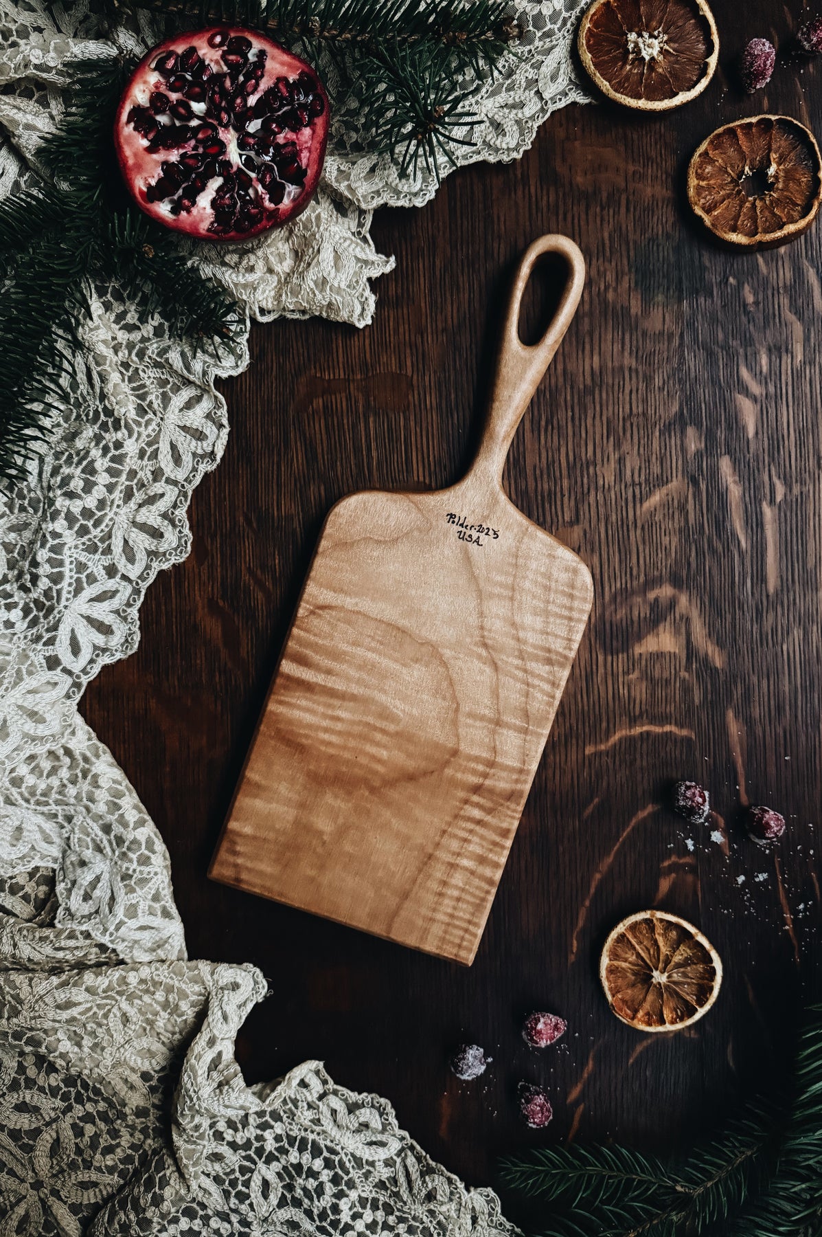 This listing is for one ready-to-ship Small Cutting & Serving Board made from Fancy Maple (approximately 13" x 5"). You will receive the exact item pictured here.