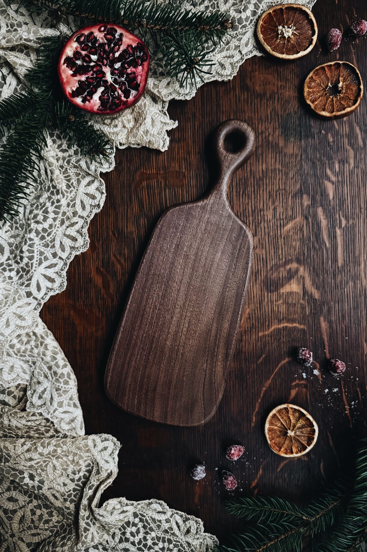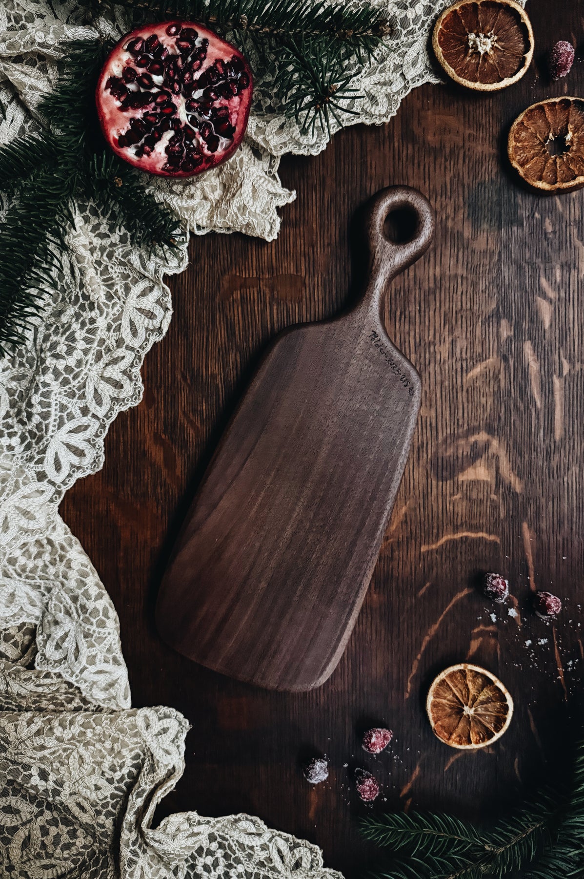 This listing is for one (1) ready-to-ship Cutting & Serving Board in Walnut (13" long x 5 wide). You will receive the exact item pictured here.