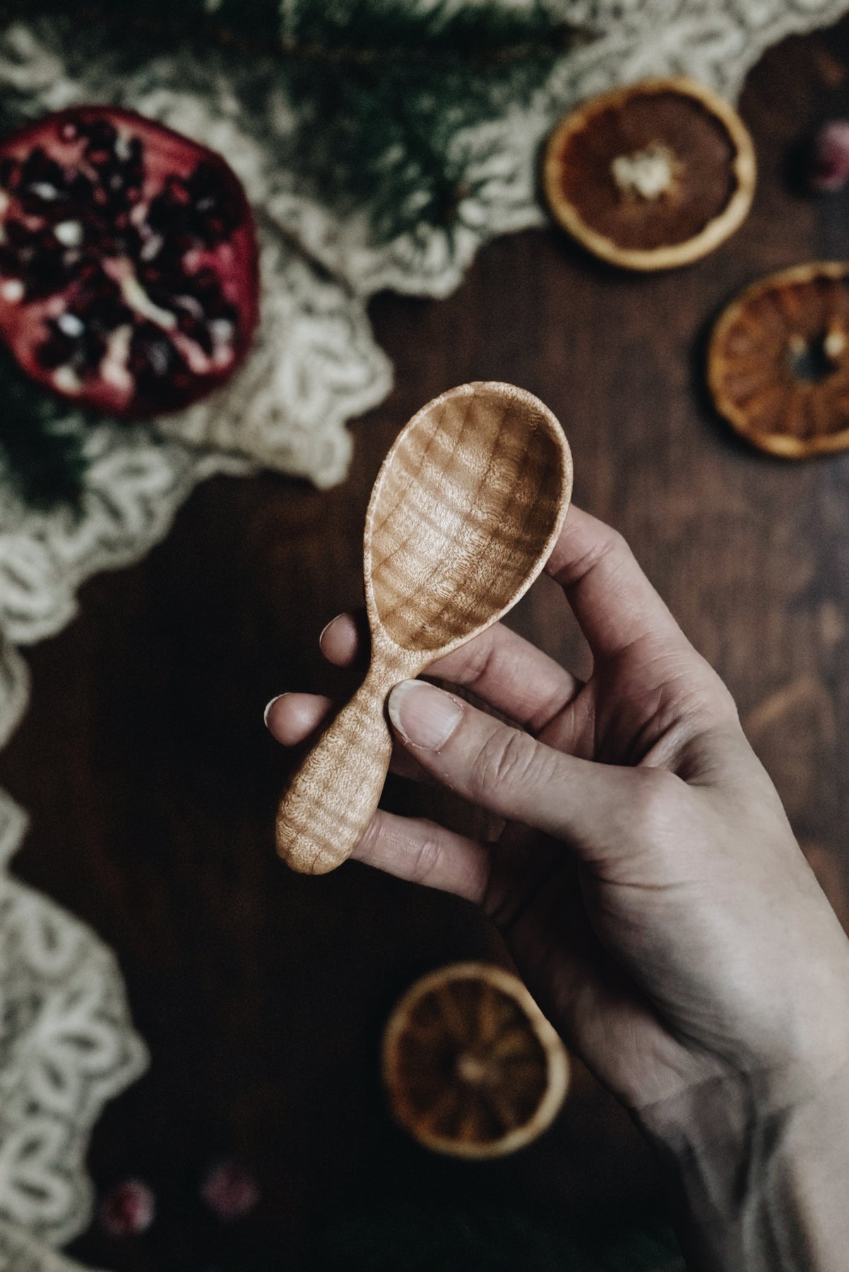 This listing is for one (1) ready-to-ship hand carved Sunrise Scoop made from Fancy Tiger Maple. You will receive the exact item shown.