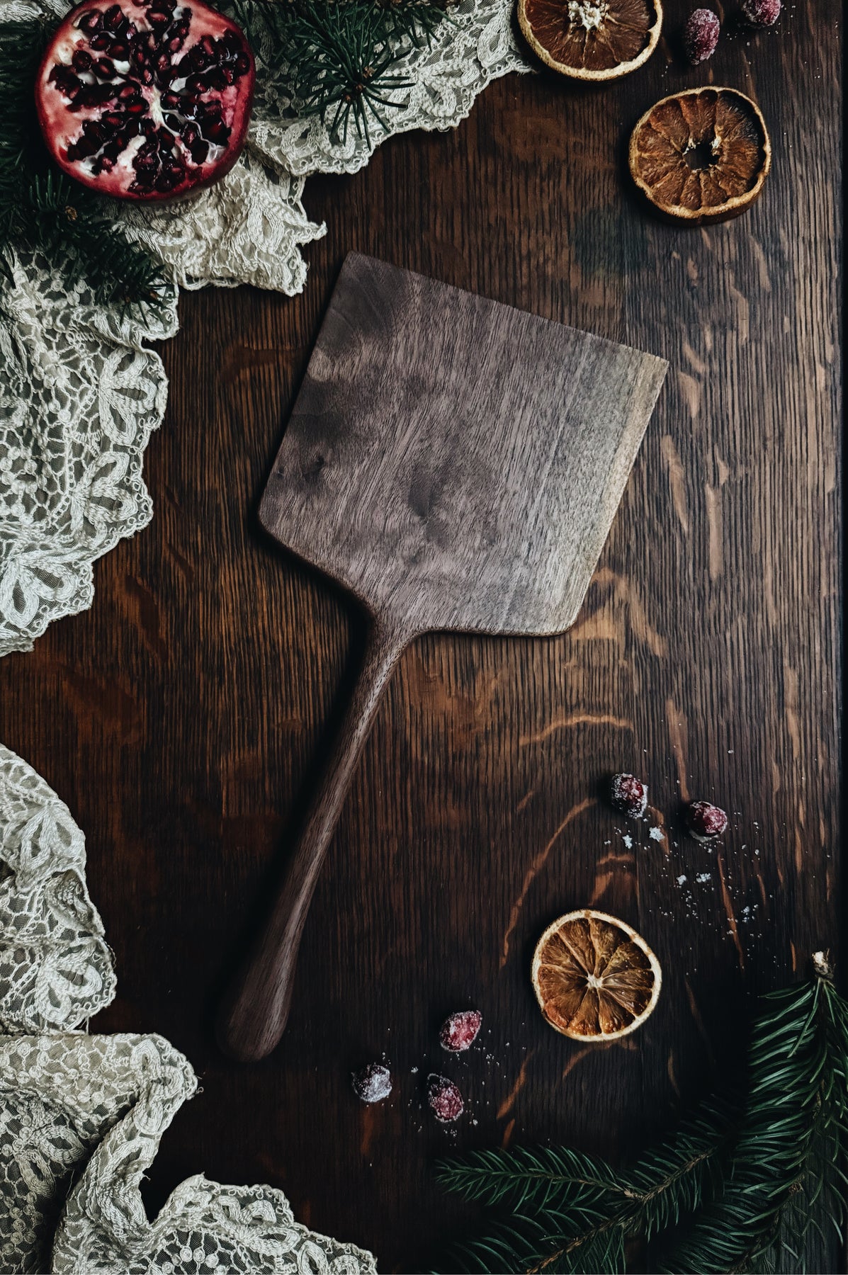 Entirely handcrafted from solid hardwood, this utensil is sturdy and durable. Meant to last a lifetime. Spatula surface is approx. 6" x 6", overall length approx. 14"L. Your artisan utensil will be signed and dated by the maker.