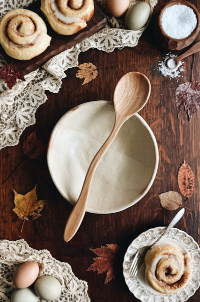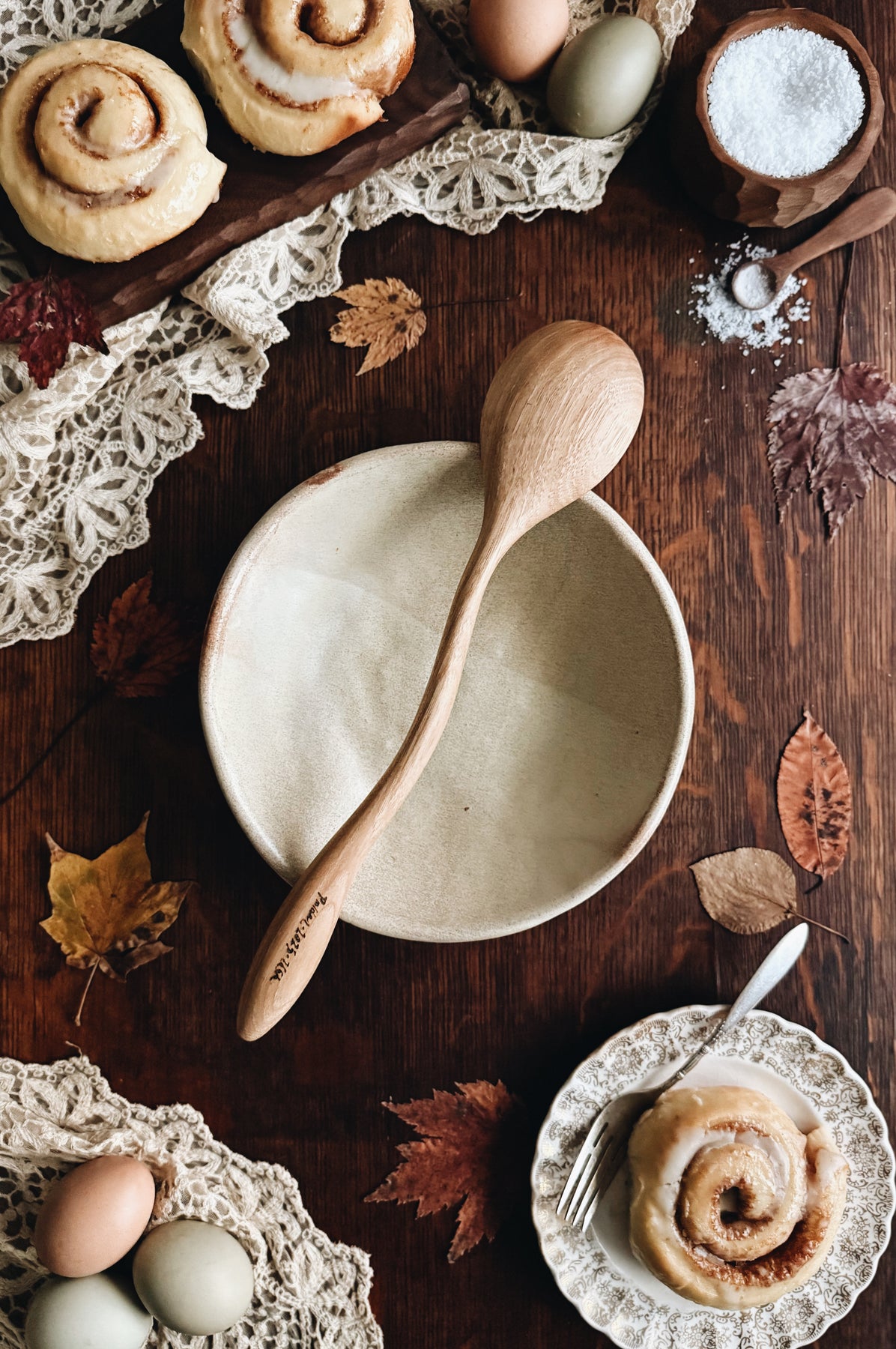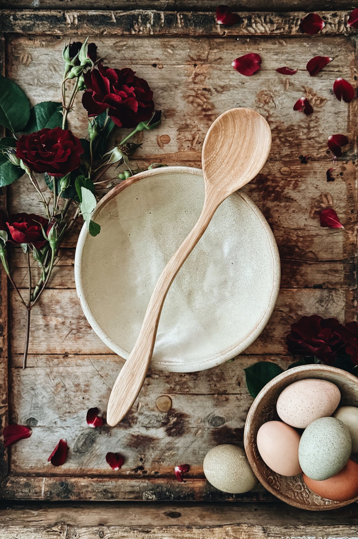 This artisan cooking spoon is not only beautiful, but also thoroughly practical. The wide dish and ergonomic curved handle of this elegant wooden spoon make it a pleasure to use for both cooking and serving. Sturdy and graceful, this handmade spoon will make your other kitchen utensils jealous.