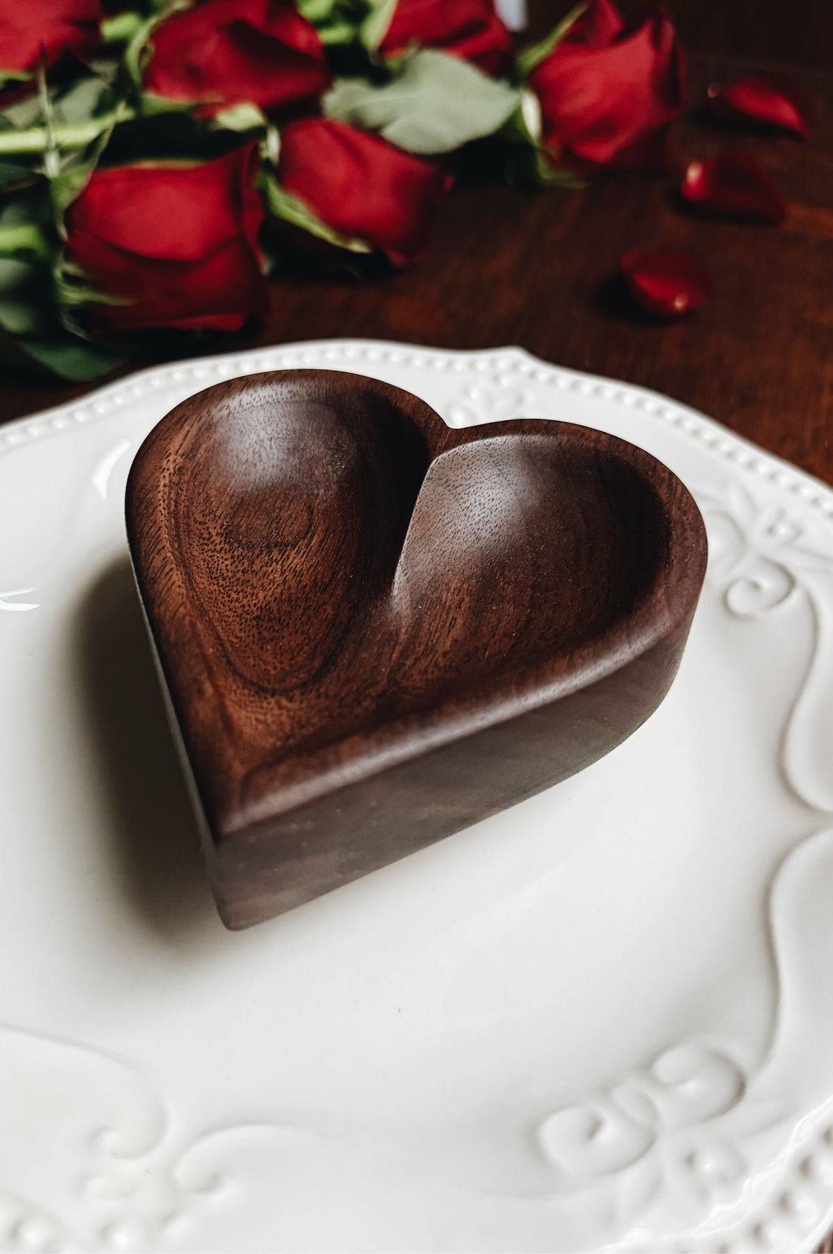 This listing is for one (1) ready-to-ship Heart Dish carved from Walnut wood. Measures approximately 4" x 3.5" x 1.5". You will receive the exact item shown.