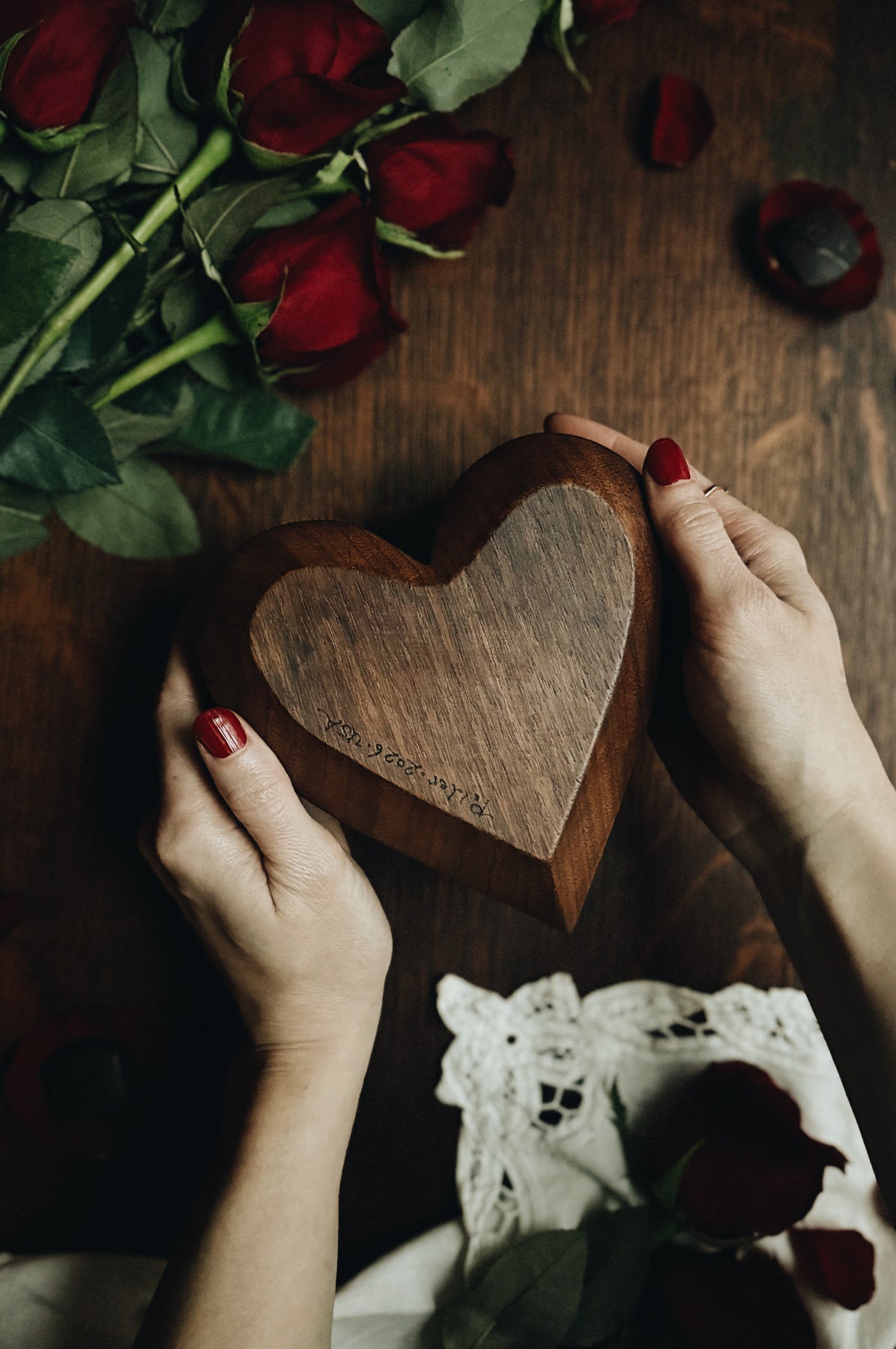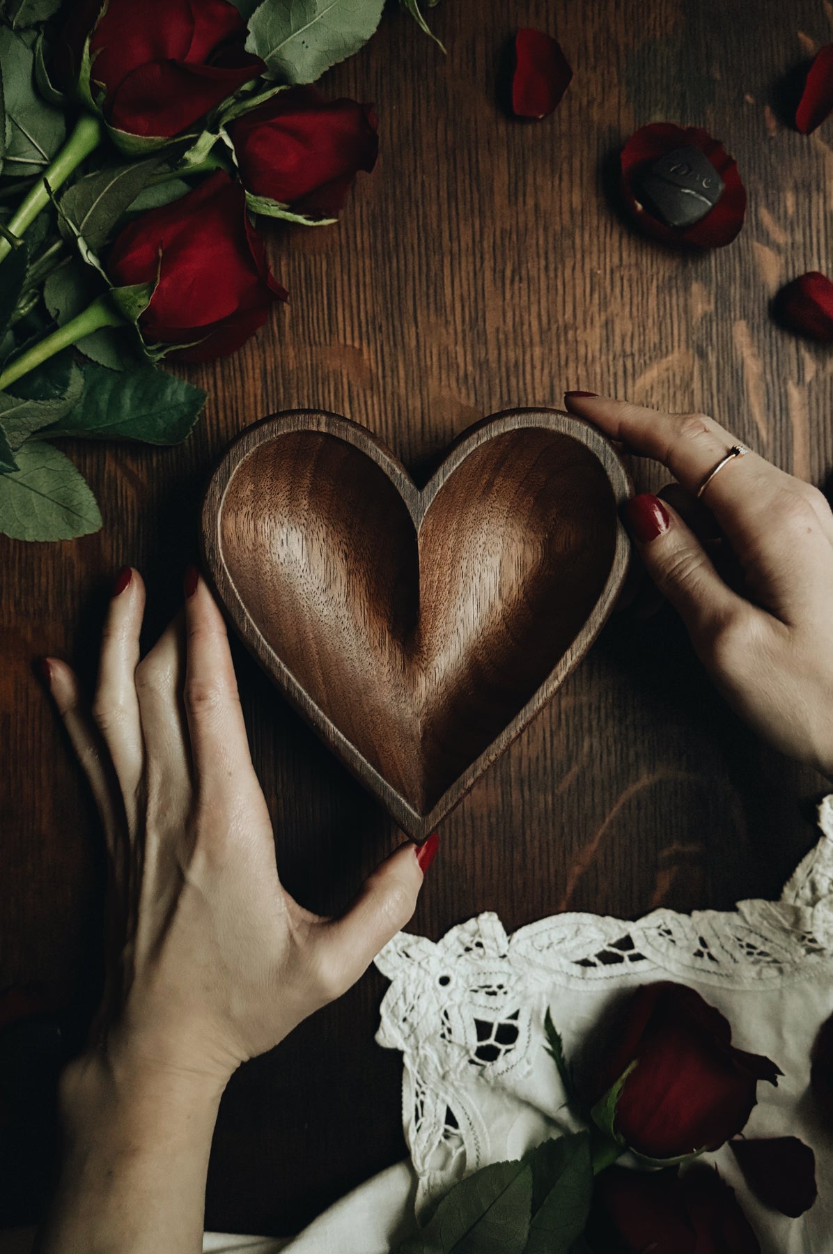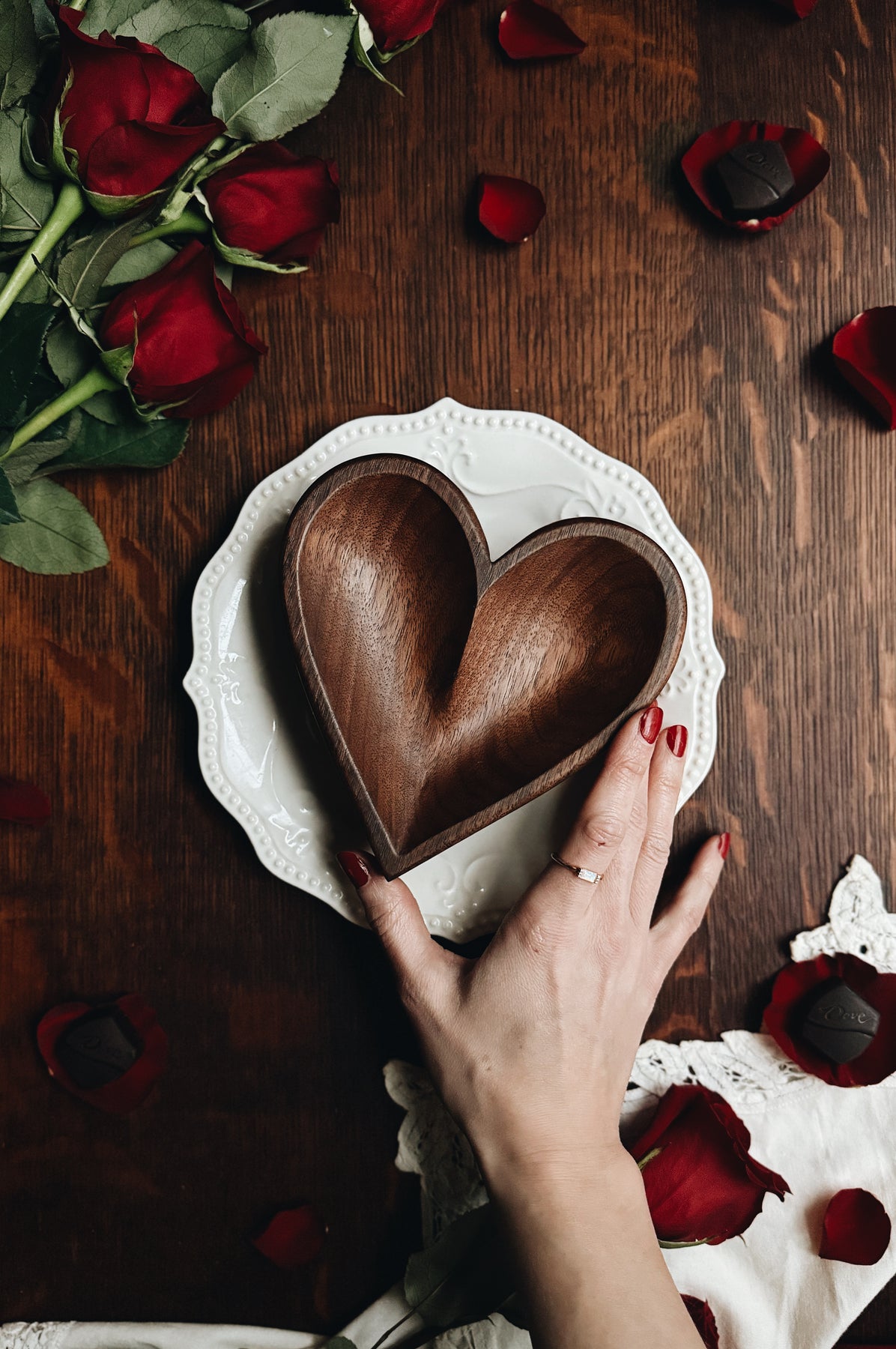 This listing is for one (1) ready-to-ship Heart Dish carved from Walnut. Measures approximately 6" x 5.75" x 2. You will receive the exact item shown.