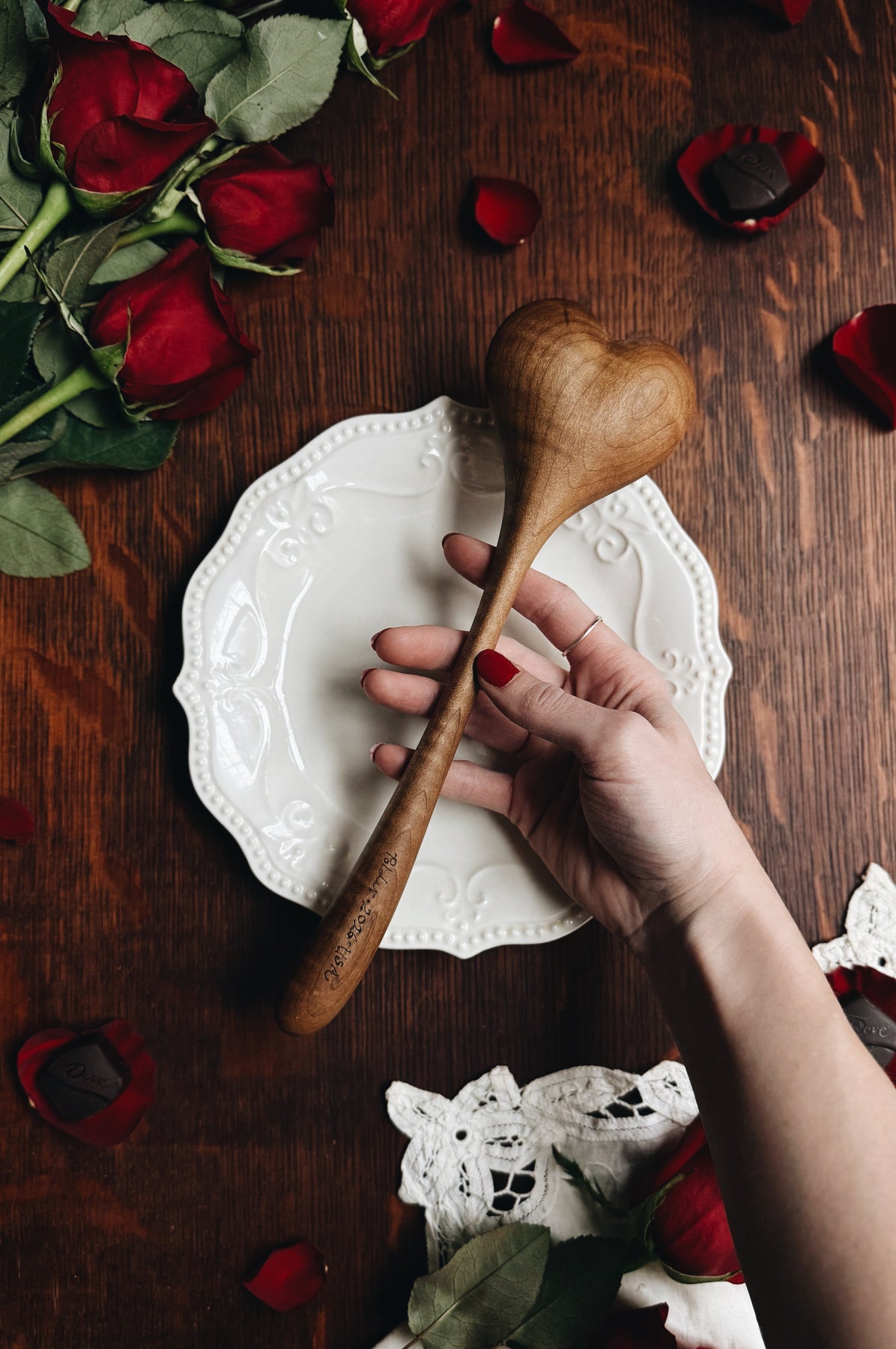 This listing is for one (1) ready-to-ship Heart Spoon style C made from Fancy Roasted Maple. You will receive the exact item shown in the photos. Approximately 10" long.